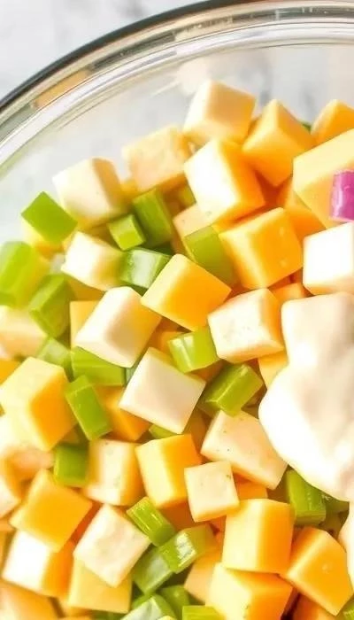 - Смешайте в миске чеддер, сельдерей и 100 г майонеза.