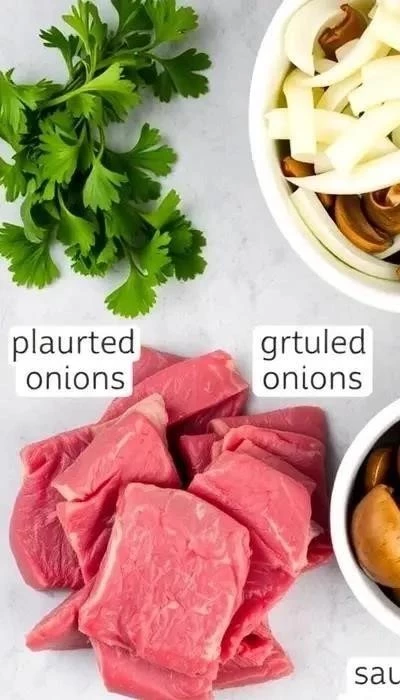 Ингредиенты: Говяжий язык (400 г), шампиньоны (300 г), лук репчатый (1 шт.), майонез, соль, перец.