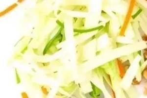 Нарежьте яблоко тонкой соломкой или небольшими кубиками. Если используете морковь и лук, подготовьте их, как указано выше.