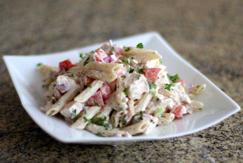 Полезный, легкий, идеальный во всех отношениях салат получается не только вкусным, но и малокалорийным. Поэтому можете смелого готовить его на ужин во время диеты. Главное условие – использовать макароны только из твердых сортов пшеницы.