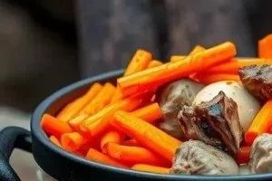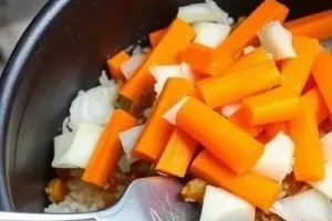 - На сковороду влить 2 ст. л. растительного масла, хорошо прогреть его. Чеснок почистить, раздавить ножом, положить в раскалённое масло и обжарить в течение 2 минут. Как появится приятный чесночный аромат, вынуть его из сковороды.
