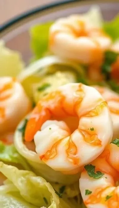Ингредиенты: айсберг, креветки, авокадо, лимонный сок, оливковое масло, соль, перец.