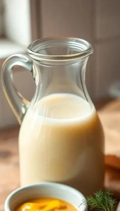 - Кефир: Заправка на кефире делает окрошку более нежной и полезной. Добавьте немного минеральной воды для легкости.