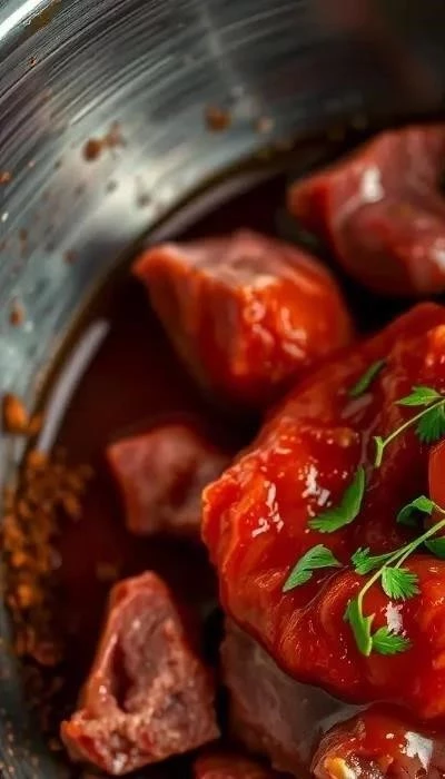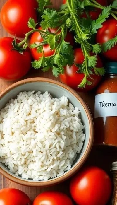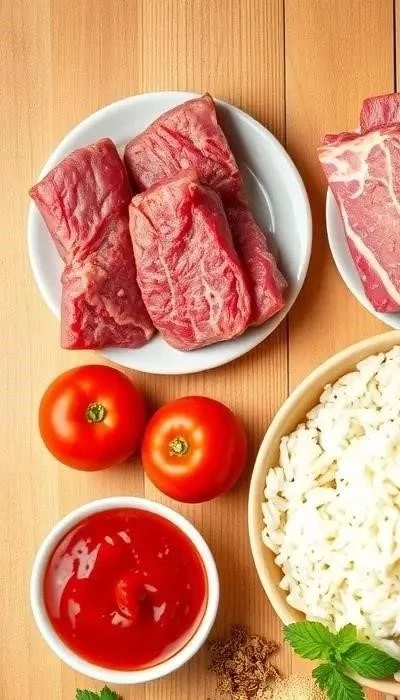 - Ингредиенты: Говядина – 500 г, Рис – 100 г, Лук – 2 шт., Томатная паста – 4 ст.л., Аджика – 1 ст.л., Хмели-сунели – 1 ст.л., Чеснок – 3 зубчика, Перец чили – 1 шт., Растительное масло – 2 ст.л., Соль, перец – по вкусу.
