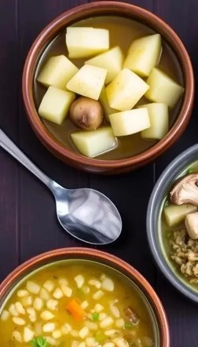 - С картофелем и крупой: добавьте в суп немного риса или гречки для большей сытности.