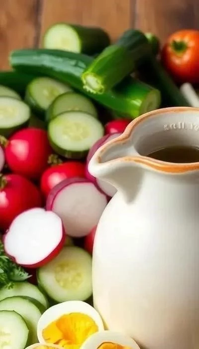 - Вегетарианская окрошка: Исключите колбасу/мясо и добавьте больше овощей и зелени.