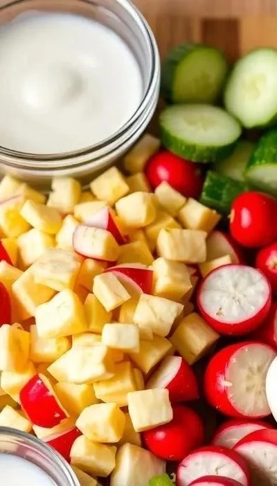 Чтобы окрошка получилась по-настоящему вкусной, важно правильно выбрать ингредиенты. Огурцы должны быть свежими и хрустящими, редис – сочным, а яблоки – кисло-сладкими. Нарезать ингредиенты лучше всего небольшими кубиками, чтобы они равномерно пропитались заправкой. Для более насыщенного вкуса можно добавить в окрошку немного горчицы или хрена. Перед подачей окрошку рекомендуется охладить в холодильнике.