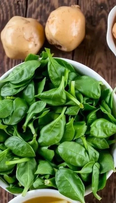 - Выбор шпината: выбирайте свежий шпинат с яркими зелеными листьями, без признаков увядания.