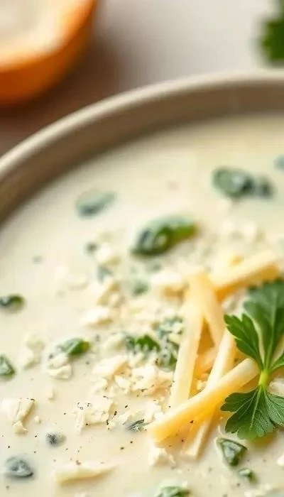 Пармезан и чеддер отлично сочетаются со шпинатом, придавая супу пикантный вкус.