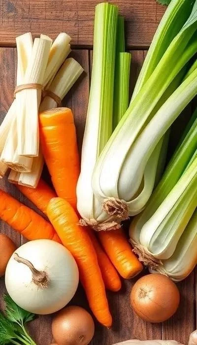 - Добавление овощей: Добавить в бульон морковь и лук, варить 10 минут. Затем добавить картофель и сельдерей, варить до готовности овощей (около 15-20 минут).