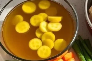 - Варка бульона: Залейте мясо холодной водой (2-2,5 литра) и доведите до кипения. Снимите пену, убавьте огонь и варите бульон 1,5-2 часа, до мягкости мяса.