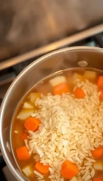 - Рис: Не переваривайте рис, иначе он разварится и суп станет мутным.