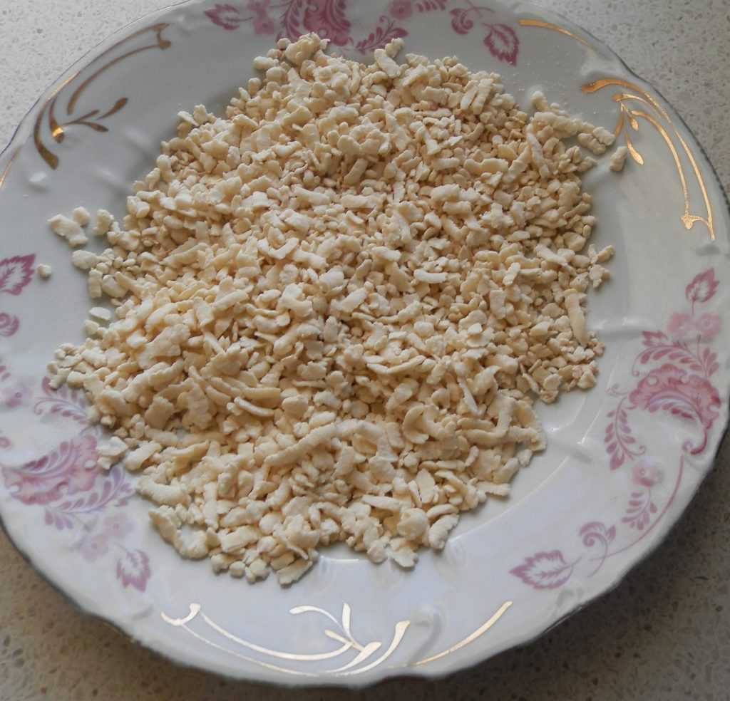 6. Образовавшуюся затирку основательно пересыпать мукой, что — бы она не слипалась.7. Затирку переложить в сито, удалить с его помощью лишнюю муку.