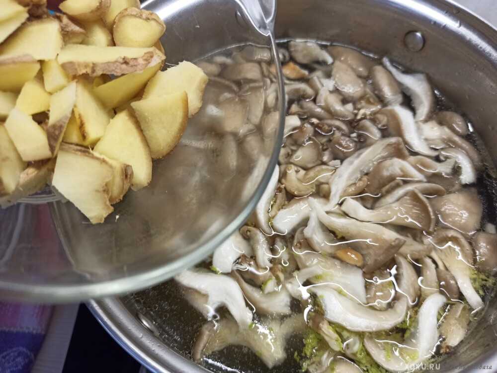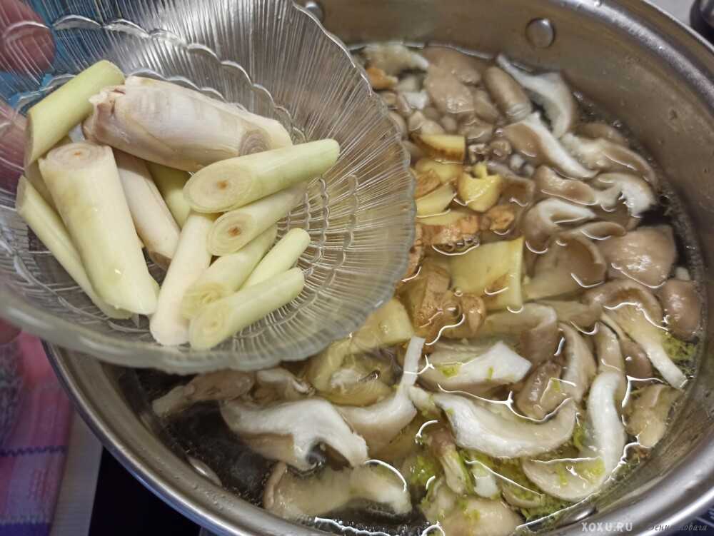 Следом отправляем грибы. Из Российских продуктов – самые подходящие грибы для Том Ям, это Вешенка. Примерно 300 грамм:
