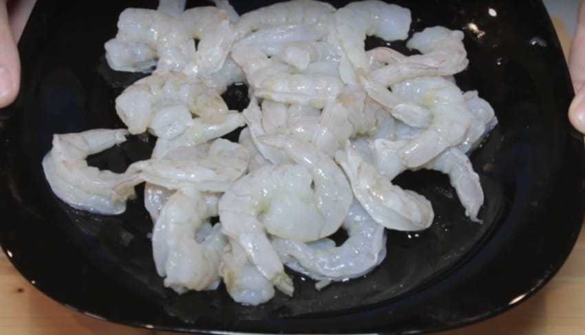 4. Креветки при необходимости почистите от панциря и тщательно промойте вместе с мидиями.