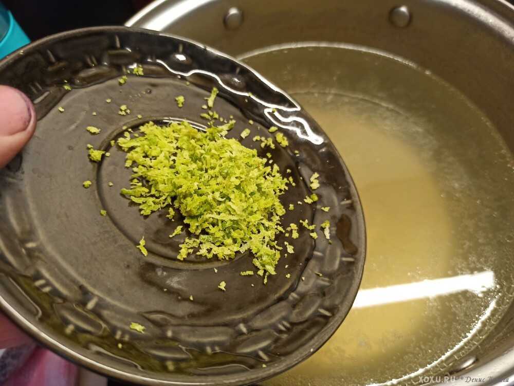 Теперь по порядку отправляем ароматы и все твердые ингредиенты. И начинаем с цедры лайма (только его зеленая часть). Цедру используем вместо листьев лайма. По аромату они похоже. Найдете листья, будет ещё лучше (5 штук). Цедры можно чуть больше. Прикладываю фото…