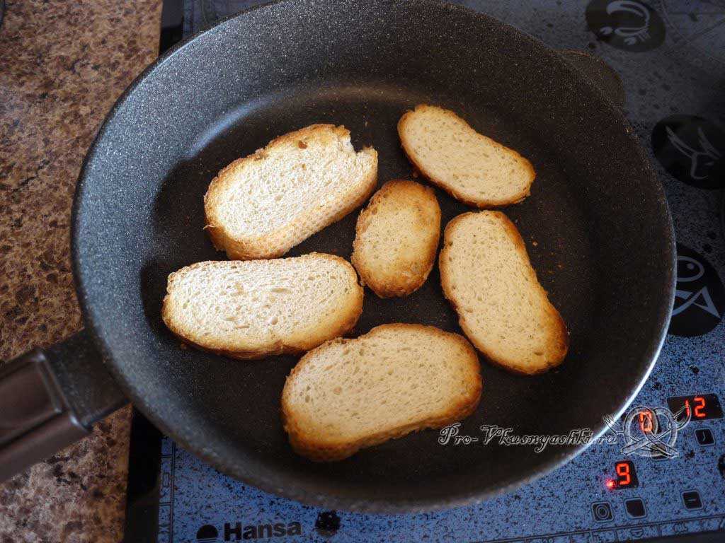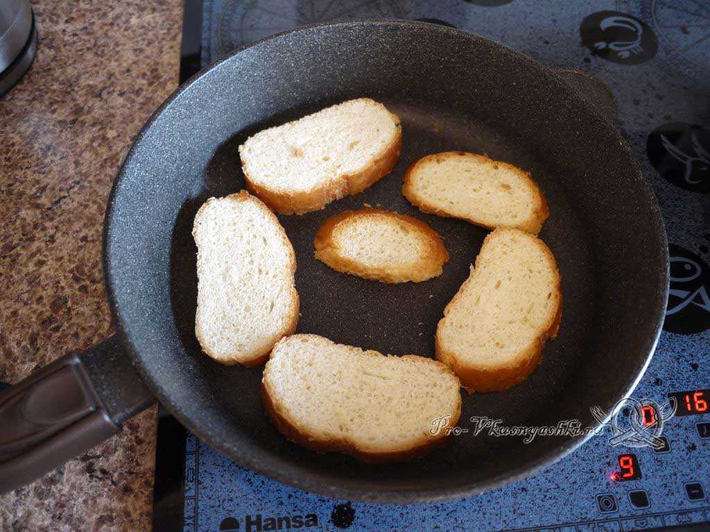 Затем переворачиваем каждый хлебный ломтик и жарим еще около 1-2 мин с другой стороны до светло-коричневого цвета поверхности.