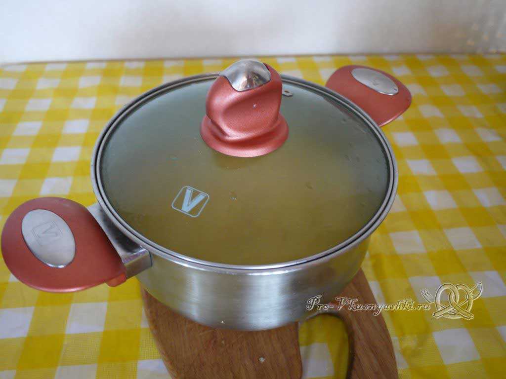 - Вода – в трехлитровую кастрюлю налить не более 2,5 л;