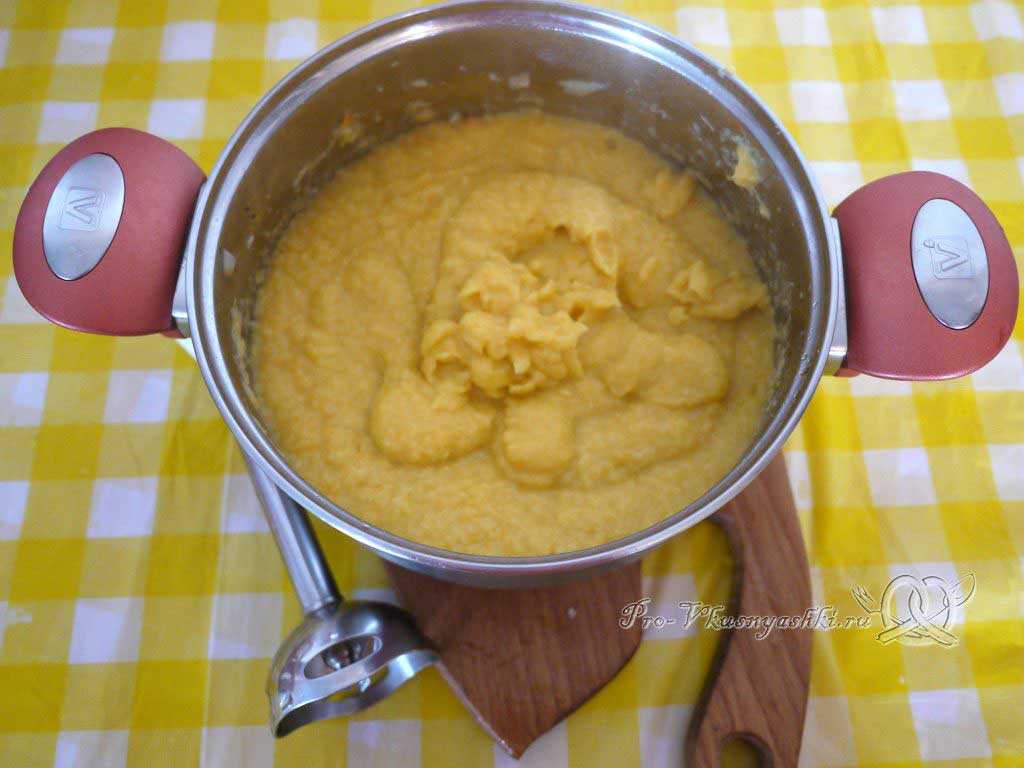 Измельчаем содержимое кастрюли в пюре при помощи блендера.