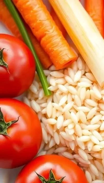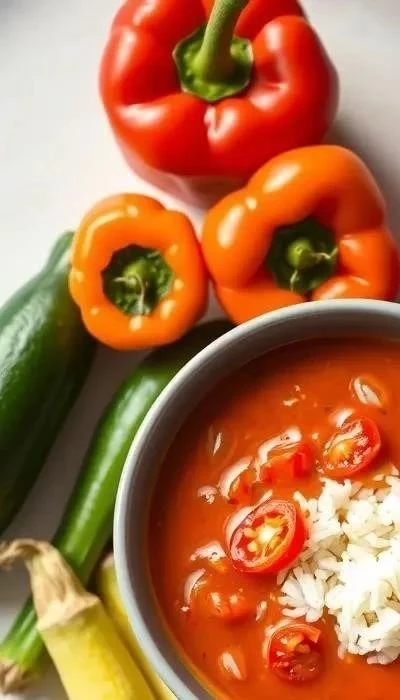 - Томатный суп с рисом и овощами: Полезный и витаминный суп, богатый клетчаткой. Добавляются различные овощи, такие как перец, кабачки, брокколи.