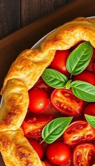 Подавайте пирог горячим или холодным, украсив свежими листьями базилика. Храните пирог в холодильнике в течение 2-3 дней.