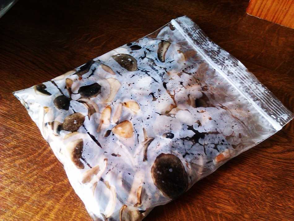 - Затем их следует переложить в пластиковые контейнеры с плотно закрывающейся крышкой или же в герметический пакет. Хранятся замороженные грибы не больше 6 месяцев.