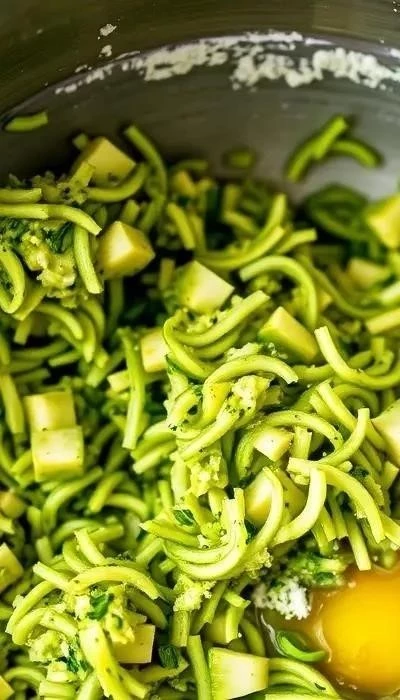- Шаг 1: В большой миске смешайте отжатые кабачки, яйца, измельченный чеснок, соль, перец и сушеные травы. Если используете сыр, натрите его на мелкой терке и добавьте в миску.
