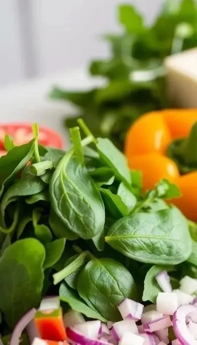 - Добавьте шпинат к луку и чесноку, тушите 5-7 минут, пока шпинат не станет мягким.