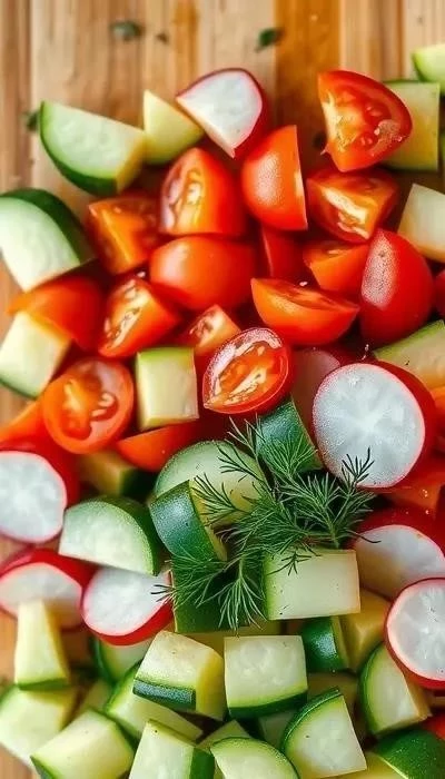 - Редис: нарезанный редис придаст салату пикантность и хруст.
