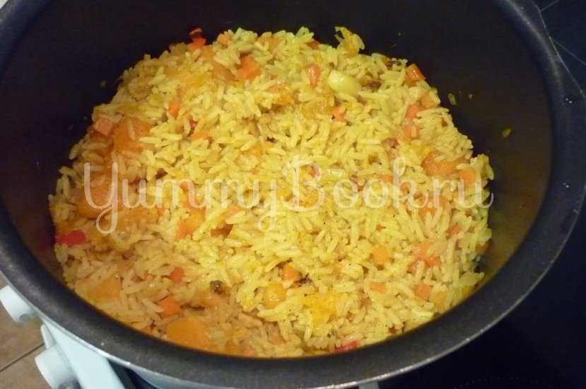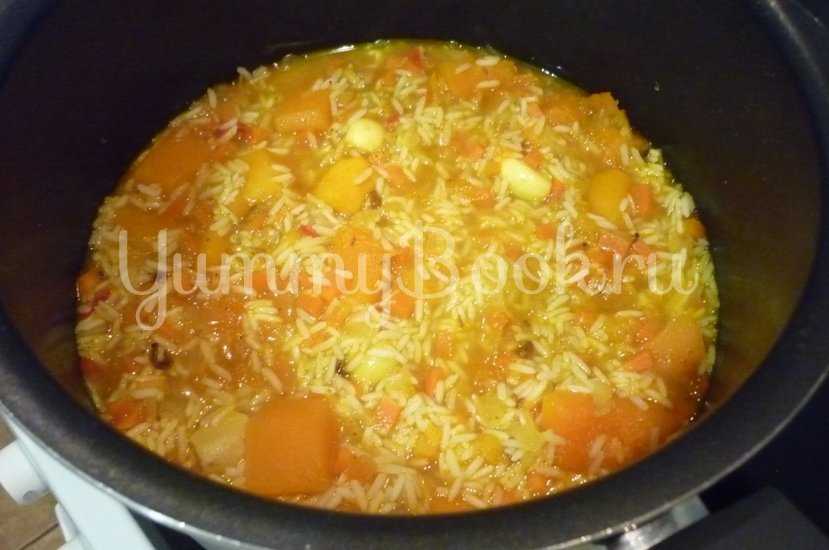 14. Добавляем в кастрюлю и аккуратно перемешиваем. Снимаем посуду с огня и даём постоять минут 10-15. Пряный рис с тыквой готов!