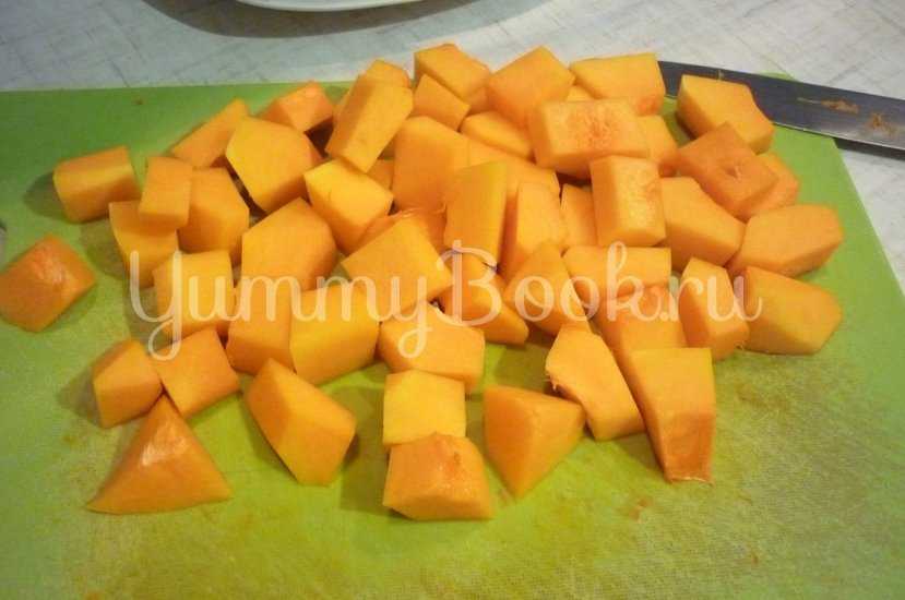 - Вначале необходимо очистить тыкву, нарезать ее кубиками и отварить до готовности, измельчить.