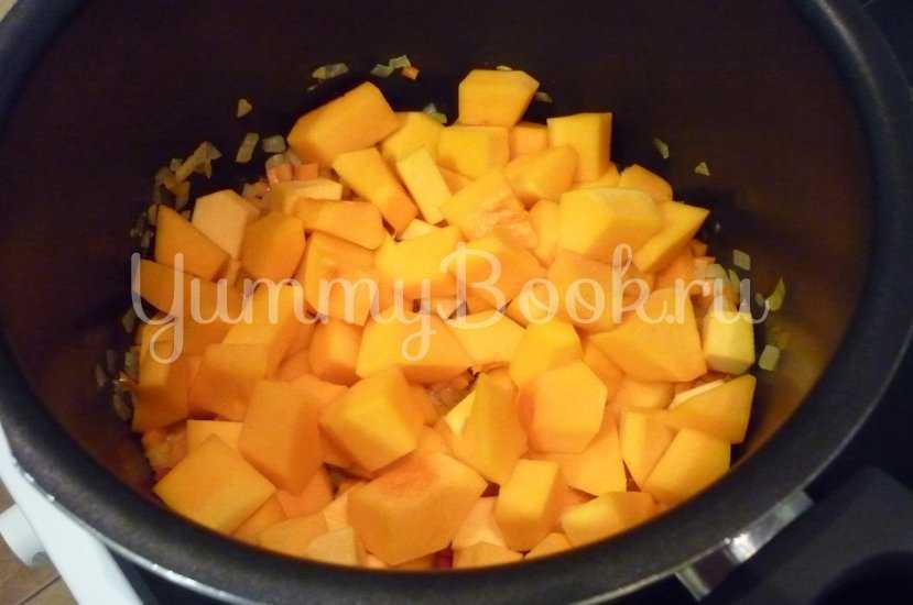 Шаг 10. На этом этапе добавляю тыкву и продолжаю варить кашу на среднем огне, периодически помешивая.