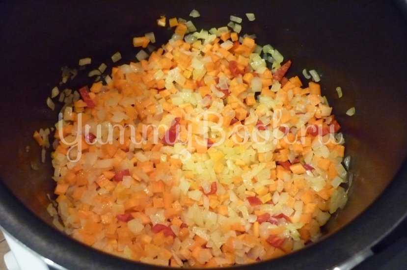 7. Жгучий перец отправляем к моркови и луку и обжариваем минут 5. Перец должен дать аромат и размягчиться.