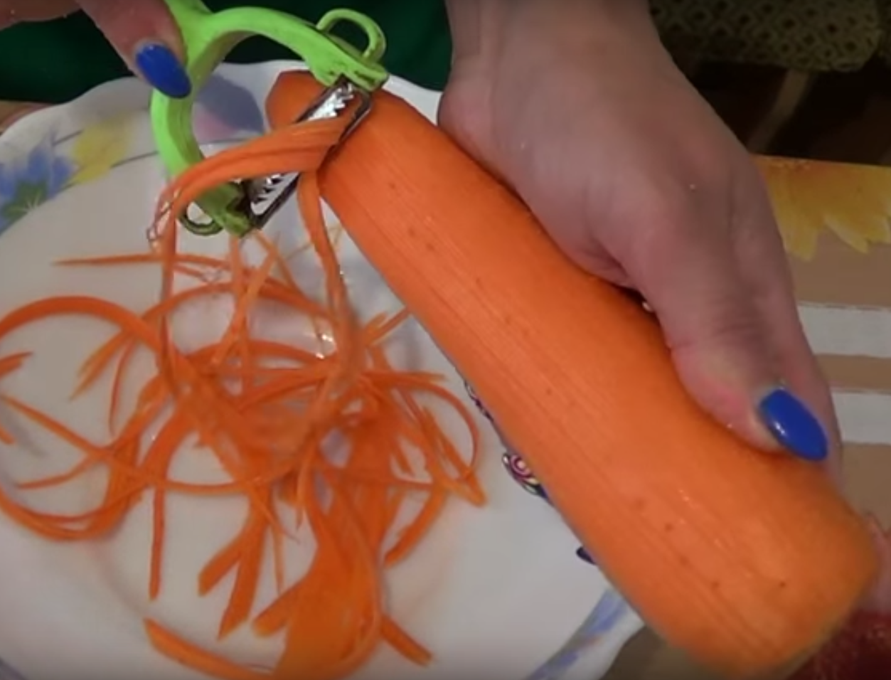 Можно морковь натереть на терке, вот так. Или на терке для корейской морковки.
